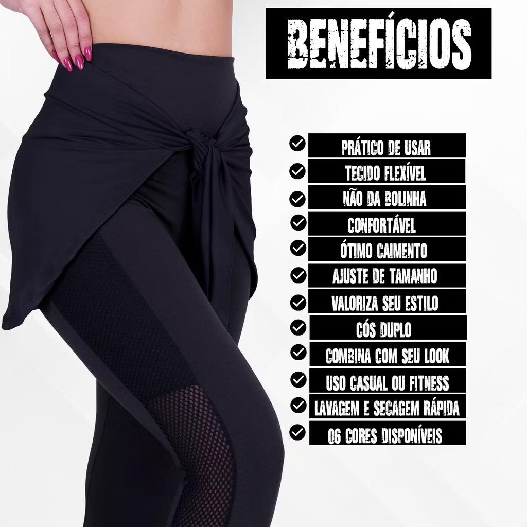 Pensando no seu conforto, desenvolvemos essa maravilhosa saia tapa bumbum, modelo versátil com amarração frontal, Cintura com cós duplo e tecido leve, macio e confortável. Ótima opção para você se sentir segura e confortável durante os treinos.